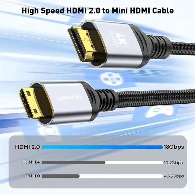 Ultra HD & High SpeedThe Mini HDMI to HDMI Cable supports 18Gbps high bandwidth and HDMI 2.0 standards enabling stable transmission of 4K Ultra HD video signals at 60Hz. It ensures you enjoy a stutter-free blur-free visual feast in Ultra HD meticulously rendering every detail for an immersive viewing and imaging experience. Ensuring an Immersive Audio-Visual ExperienceThe HDMI to Mini HDMI Cable not only supports high-definition video transmission but also delivers HDR10 high dynamic range imaging 3D visuals and multi-channel digital audio. With eARC support it transmits high-quality audio tracks like Dolby Atmos bringing you an immersive audio-visual experience.