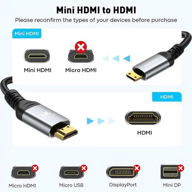 The outer layer is made of abrasion-resistant nylon braiding significantly enhancing the cable's tensile strength and durability while effectively preventing accidental breakage from pulling. Bi-Directional Mini HDMI TransmissionMini HDMI to HDMI adapter requires no drivers and is plug-and-play. Effortlessly stream audio and video signals from devices like DSLR cameras camcorders laptops and tablets via Mini HDMI to display devices such as TVs monitors or projectors equipped with HDMI ports.