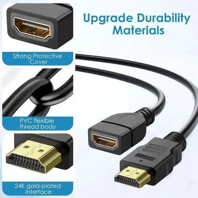 HDMI Extender Cable: HDMI Male to Female Cable extends the connection between your HDTV monitor or projector and HDMI source devices such as Blu-ray players AV receivers game consoles and computers. This short HDMI extension cable effectively extends your existing HDMI cable protects your original HDMI port reduces signal loss effectively solves problems such as screen flicker and insufficient bandwidth and provides the best video transmissionFull HD 1080P