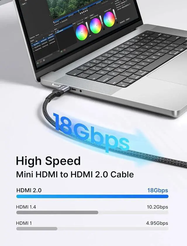 GbpsStable Transmission: 30AWG tinned copper conductors provide this mini HDMI cord with superior conductivity. Triple shieldings effectively protect against EMI interference ensuring more stable signal transmission. With gold plated connectors this high-speed mini HDMI cable offers you a longer lifespan