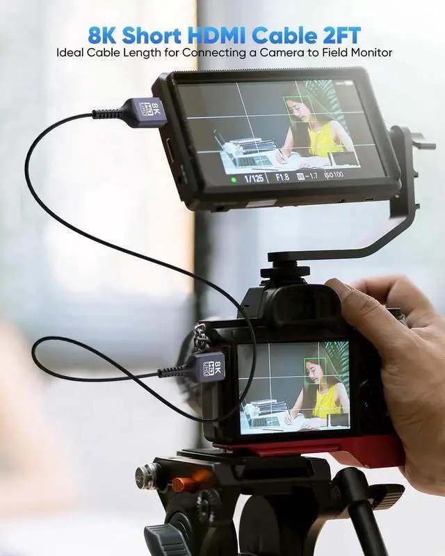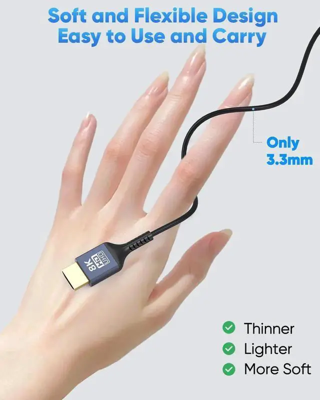 Extremely Thin & Flexible HDMI Cable 2FTOur newly developed 8K@60Hz HDMI 2.1 combines ultra thin HDMI cable (diameter is only 3.3 mm and the internal cable length without connectors is 1.6 feet). 8K Ultra thin HDMI cable is the top technology in the market. While ensuring stable signal transmission utlra slim hdmi cables greatly reduce the amount of physical space they occupy allowing them to be used in extremely tight spacesBest Choice for Short DistancesAt only 2 feet long short hdmi cable 2 foot is designed to be soft and flexible easy to use and carry perfect for hdmi switchers camcorder field monitors cameras and more short distance hdmi device connectivity.