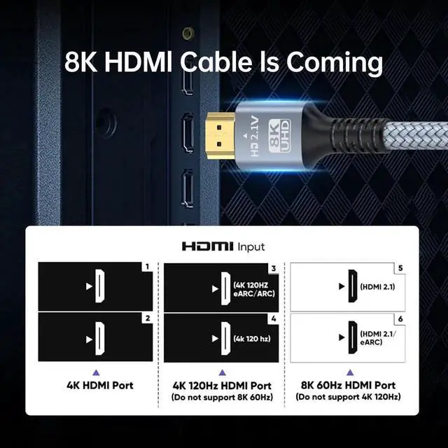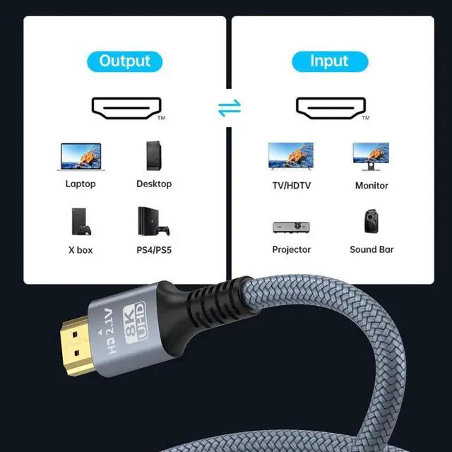 It is also backward compatible with HDMI 2.0 b/ 2.0 a/ 1.4 / 1.3 / 1.2 / 1.1 versionsFor Game Enthusiasts This 8K Ultra High Speed HDMI Cable is not limited to 4K@60HZ it can break through 4K and achieve 8K ultra-high image quality. It can also achieve a super smooth picture of 4K@120HZ. Its latest game mode supports variable refresh rate maximizes the value of the graphics card and CPU and is more accurate in the processing of rendered images. When the scene is switched the refresh rate will change accordingly to obtain a smoother and more detailed picture.