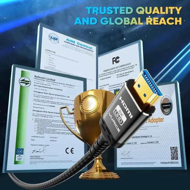 Every cable and even every part has been put through rigorous testing. We've combined every flawless part into a perfect 8K HDMI cable. Then pass the performance tests in the laboratory and present them to you after passing the exam As long as you use our HDMI cables we are responsible for you. If you have any questions you can always contact us. All of this is just to give you a better shopping experience