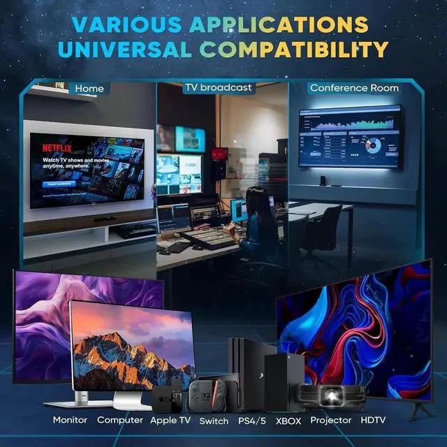 Real 8K@60HZ HDMI Cable This 8K HDMI Cable uses the most cutting-edge technology is compatible with 8K@60HZ and 4K@120HZ clearly displays every particle and accurately processes every signal source. With 8K HDMI's unique dynamic HDR and 12 Bit color processing technology and 48Gbps bandwidth it can provide the Ultra High Definition cinematic experience and 3D visual effects with more ideal depth brightness detail contrast and wider color gamutUHD HDMI 2.1 CableYuaice Real 8K HDMI Cable meets the standard HDMI 2.1 Version and is also backward compatible with HDMI 2.0 b/ 2.0 a/ 1.4 / 1.3 / 1.2 / 1.1 versions.
