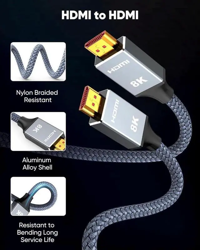 Compatible: Supports all HDMI versions ( 2.1 2.0 and so on) and features tinplate metal shielding and gold-plated connectors to reduce interference and ensure stable signal transmission