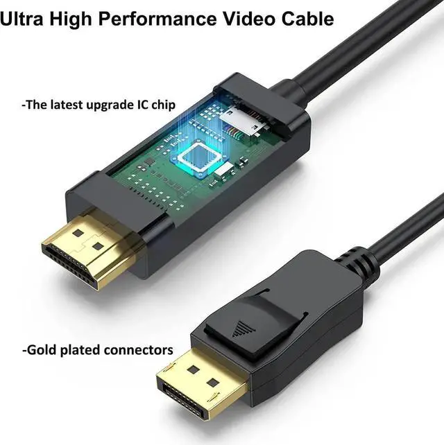 (Note: NOT bi-directional. Check that your computer has DisplayPort not another type of connector ) Display Port to HDMI cable is used to directly connects a DisplayPort port(DP DP++) compatible Laptop or Desktop to a HD monitor or projector with HDMI port seamlessly (such as HP and More) Supports video resolution up to 1920x1200 /1080p including 00x600 1024x768 1280x1024 1440x900 1600x1200 1680x1050 and flawless audio with uncompressed digital 7.1 5.1 or 2 channelsSupport advanced system: Windows7 8 8.1 10 11 Chrome OS MacOS High Sierra 10.13. 4 or higher and backward compatibleTransmits high-definition audio and video from your computer to an HDTV for video streaming or gaming; Connect DP to HDMI cable and configure your monitor for an Extended Desktop or