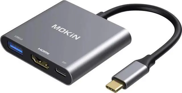 3-in-1 Multiport USB C AdapterExpand your USB Type-C Port to a USB 3.0 port a HDMI 4K output port and a USB-C charging port. Three ports can work at the same time. You can connect a USB C Thunderbolt 3-equipped PC or laptop to a HDMI display while connecting a standard USB device and charging your usb c devices at the same time 4K Video USB-C To HDMI Adapter Mirror or extend your screen with USB C Hub HDMI port and directly stream 4K UHD @ 30Hz or Full HD 1080p video to HDTV monitor or projector Super Speed USB 3.0 Ports(At Full-Speed)Allow you to connect keyboard mouse hard drive etc to MacBook Pro Up to 5Gbps data transmission speed down compatible with USB A 2.0 and below.