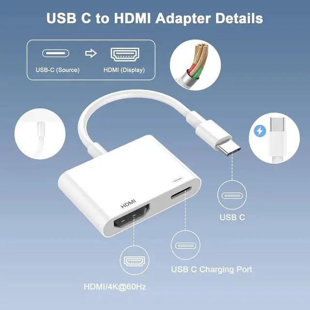 ![Alt view image 4 of 7 - [MFi Certified] USB C to HDMI Adapter USB Type C to Digital AV Adapter 4K Sync Screen Connector Cable Compatible for iPhone 16/16 Plus/16 Pro/16 Pro Max/15/15 Pro/15 Pro Max to HDTV Projector Monitor](https://c1.neweggimages.com/productimage/nb640/C280S2509200AM26V99.jpg)