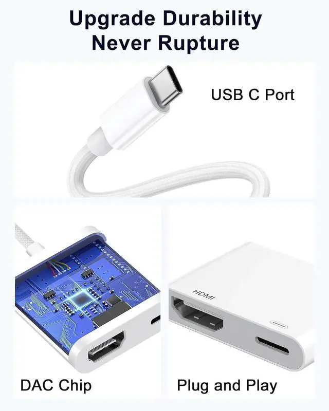 Portable: The usb c to hdmi adapter's sleek and lightweight design makes it perfect for on-the-go use type c to hdmi allowing you to share content or stream media from your iPhone anywhereCompatibility: HDMI adapter compatible with iPhone 16/15 Plus Pro Max and other USB-C enabled devices providing a versatile solution for your digital AV needs. While this iPhone to HDMI adapter supports YouTube Hulu Plus IDMB Quickflix Family On TV ABC NBC FOX Local Video Netflix/Prime/Hulu and other apps