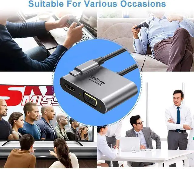 )Easy to Use: Plug and Play no software or drivers needed 2-IN-1 USB Type C 3.1 Adapter is an ideal solution for connecting USB-C devices (compatible with Thunderbolt 3) to HDMI or VGA equipped displays