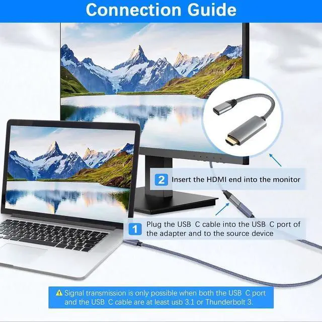 (Beware) Pay attention to the direction of signal transmission while using this product. The HDMI end of the converter should always be connected to the receiving device. The USBC port of the converter is for inserting your Type-C cable which has to be at least USB 3.1 to be able to carry video signals. To know more see the pictures and demo video. (Square Peg Round Hole? No more) The tech world is far from using a unified interface to connect different devices. But a simple converter can make that chaos go away.