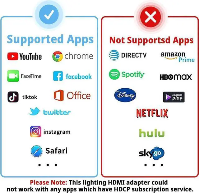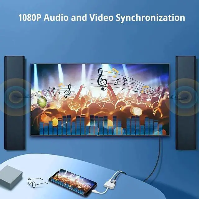 Huge CompatibilityThis HDMI adapter support for multiple devices such as iPhone 14/14 Pro/14 Pro Max iPhone 13/12/11/Pro Max iPhone X/XR/XS/XS Max iPhone 8 7 6 Plus; iPad iPod and other the Lightning interface devices it supports All iOS system (Not work with latest iPad Pro with USB-C port)1080P Audio and Video SynchronizationThe Lightning to HDMI Adapter support mirroring of what is displayed on your device screen including images movies games and including apps presentations websites slide shows and more to your HDMI equipped TV display projector or other compatible display in resolutions up to Full High Def (1080p) Plug and Play No need any setting.