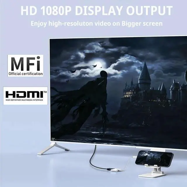 ![Alt view image 4 of 7 - JAENFONG [ MFi Certified] Lightning to HDMI Adapter No Power Needed 1080P Video & Audio Sync Screen Converter with Lightning Charging Port iPhone to HDMI Adapter Compatible with iOS](https://c1.neweggimages.com/productimage/nb640/C280S2509200EHFBB45.jpg)