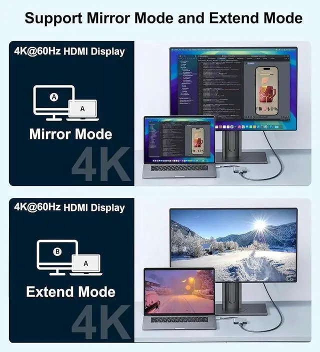 HDMI Output: The USB-C to 4K@60Hz HDMI Adapter supports Mirror or expand high-resolution graphics images/videos Max 4K (3840x2160) @ 60Hz to HDTV Monitor or Projector. It is ideal for screen sharing or extension games and video streaming.