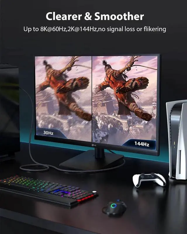 [ 8K Ultra HD Resolution ] HDMI 2.1 cable adheres to the latest HDMI 2.1 a specification supporting high-resolution formats like 10K@30Hz 8K@60Hz 4K@120Hz and 2K@144Hz.