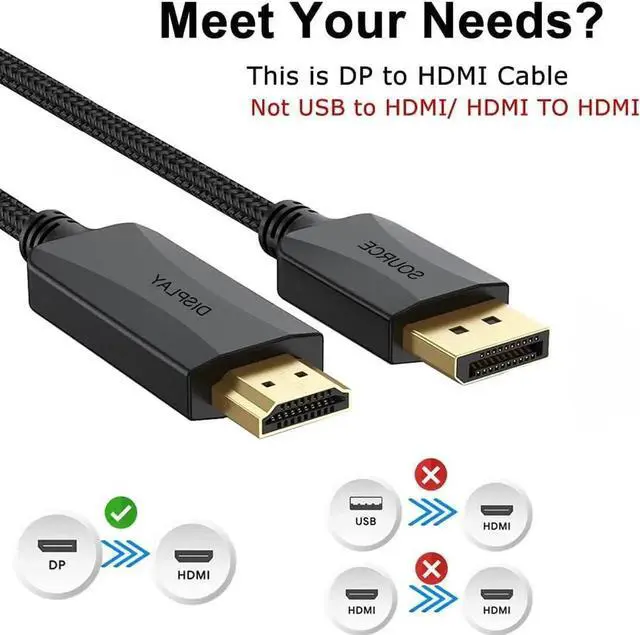 Compact StructureExclusive design compact simple and fashionable perfect for use with multi interface laptop and desktops. With its extra-long 10ft reach you get the freedom to organize your space without compromising signal quality4K Universal Display CompatibilityExtended Desktop mode and Mirrored Display mode are make you better entertainment experiences from a small or old computer. Support high video industry-leading 4K UHD (3840×2160) @30Hz clarity with multi-format support including QHD (2560×1440) @60Hz and Full HD (1920×1080) @120Hz for universal display compatibility. AttributeConvenient DisplayPort to HDMI cable directly connects a DisplayPort (DP DP++ DisplayPort++) output equipped computer to an HDTV monitor or projector with HDMI inputThis is unidirectional Only convert signal from DP to HDMI but can't HDMI to DP)Premium MaterialDisplay no Flicker no