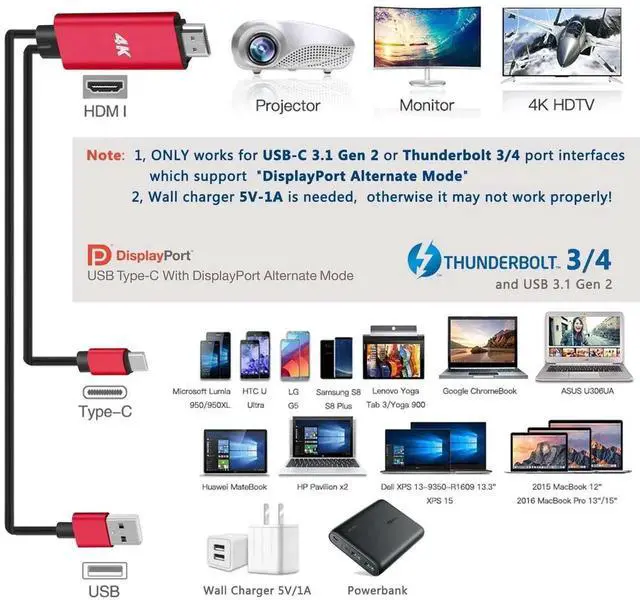 HDMI Adapter for Android Phone - This HDTV cord is a MHL wire to connect USB type C ( Thunderbolt 3 ) port cell phones / laptops with DP Alt Mode such as Galaxy S21 S20 S10 S9 Plus S8 Note 20 10 9 8 LG G8 G5 V35 iPad Pro Mac iMac MacBook Pro 2017/2016 MacBook 2015/2016 ChromeBook Pixel XPS 13/15 Yoga 910 HP Specter x360 etc. for conference projection driving navigation video picture digital av phone games to projector / monitor / car dash board AirPlay / TVs. USB-C to HDMI - Upgraded 4K 60FPS HD video digital av cable embeded the highest quality chipset to perform resolutions up to 4K contents with audio and video signal of 4K*2K (3840*2160) at 60Hz without lag smooth and flawlessly picture; Backward compatible with 1080p.