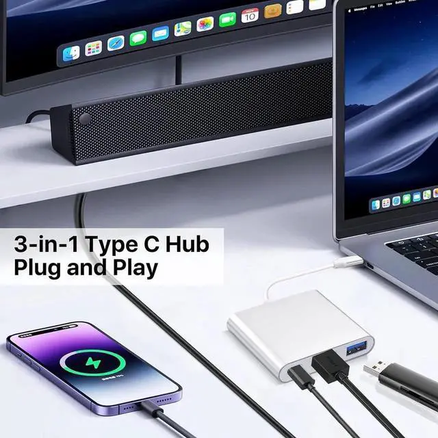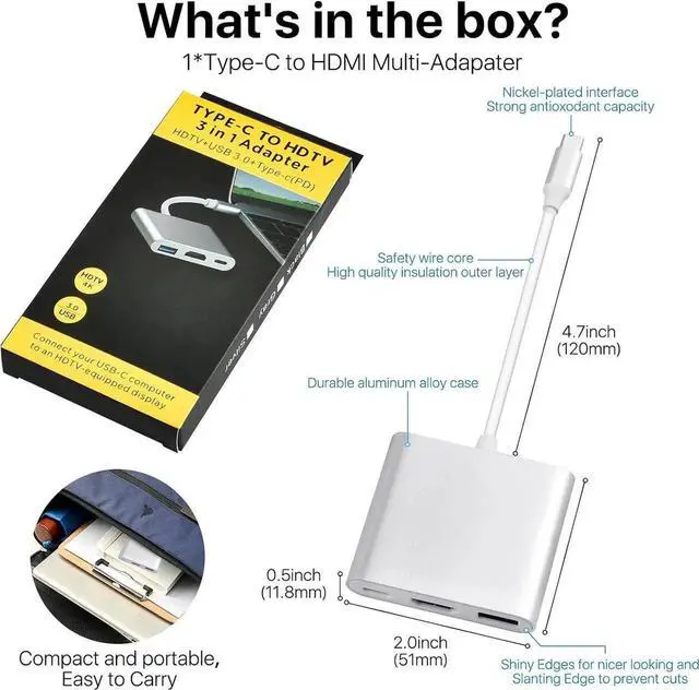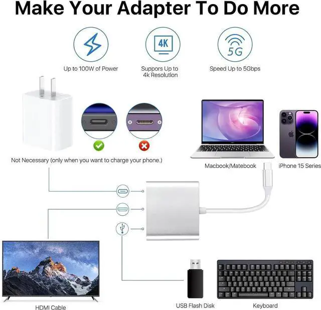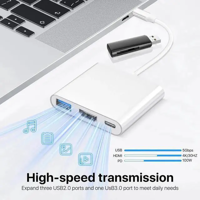 USB C to HDMI Adapter Multiport Hub USB 3.0 Port and 100W Type C Charging Port with 4K HDMI Plug & Play Type-C Adapter for MacBook MacBook Pro iPhone 15 Pro Air iPad Pro