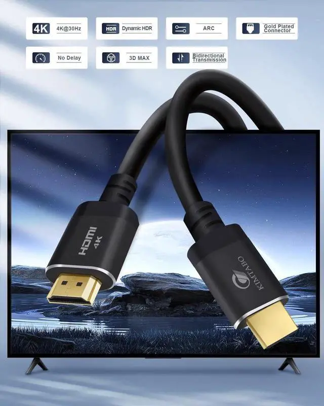 4K at 30Hz: This KIMTABO HDMI cable supports video resolution up to 4K 30Hz (4096x2160 30Hz) backward compatible 2K 1080p 720p providing you with the highest level of video performance for your TV monitor or projector.