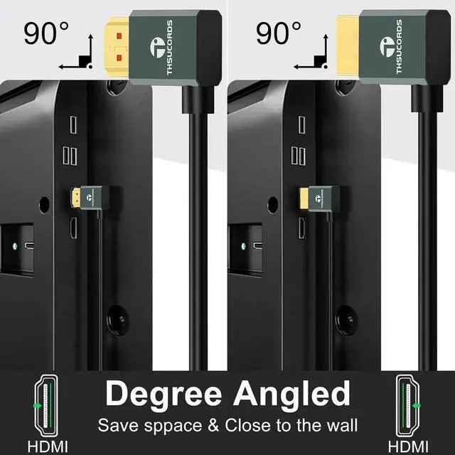 ? Right Angle DesignUltra-thin 8K HDMI is 10FT and Right 90° Angle cable suitable for small spaces easy to hang on wall TVs boxes monitors etc. easy to connect and use easy to connect and avoid bending.? 8K Ultra Thin HDMI CableSupports up to resolution and refresh rate 8K@60Hz 4K@120Hz with a transmission speed of up to 48Gbps bandwidth dynamic HDR10 variable refresh rate (VRR) fast frame transfer (QFT) and fast media switching (QMS) supporting eARC it can achieve more advanced audio signal control functions.? Gold-plated ConnectorsHigh quality gold-plated connectors ensure secure connections with all devices.