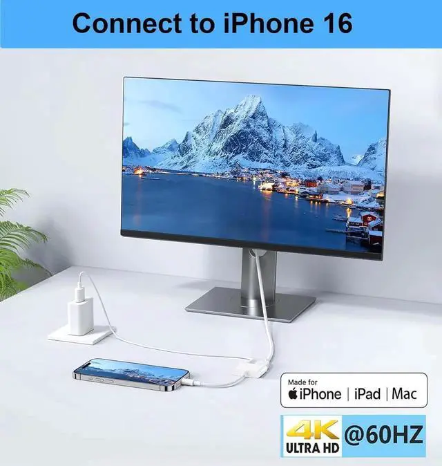 HDMI Converter: With MFi certified chip it supports mirroring/extending the iPhone 15/16/computer/MacBook/iMac/iPad Pro/smartphone screen (including apps videos pictures presentations websites slides etc. ) to HDMI-enabled TVs monitors projectors and other devices. Suitable for home theater entertainment office exhibition demonstration teaching etc.