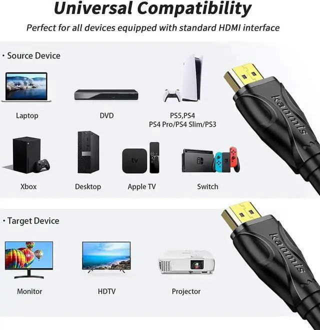 Connect Blu-Ray Player TV set Xbox one video game PS4/PS5 and laptops with HDMI output to 4K UHD TV projectors A/V Receiver etcFor 4k HDMI cable of any size purchased from our store if you encounter problems such as not working during use please contact us for assistance through and we will help you within 24 hours