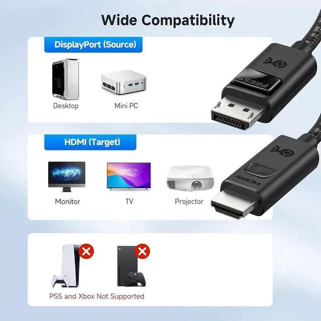Note: Only works from DP (PC) to HDMI (display). Not compatible with PS5 or Xbox.