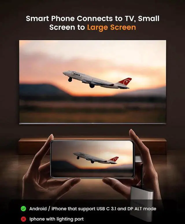 Compatibility: The USB-C to HDMI multiport adapter is compatible with Windows Mac OS Android systems Iph-one 15 series. Such as MacBook Pro/Air 2023 Nitendo Switch Chromebook HP spectre Pavilion XPS series. Before purchase please kindly conform your phone with Thunderbolt 3 full function or above version your laptop with USB 3.0 or above version port and support DP ALT modeSingle