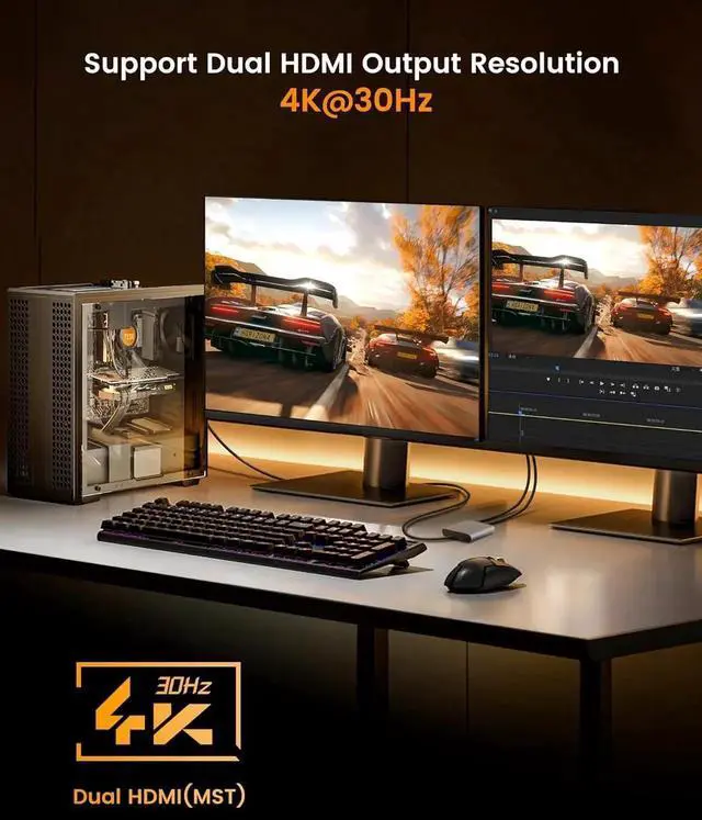 HDMI Output Maximum 4K@60Hz: with this USB-C to dual HDMI adapter if you connect only one HDMI output the maximum output resolution reaches 4K@ 60HZ. If you connect 2 HDMI output devices to display simultaneously the maximum resolution for both monitors is 4K@30HZ.