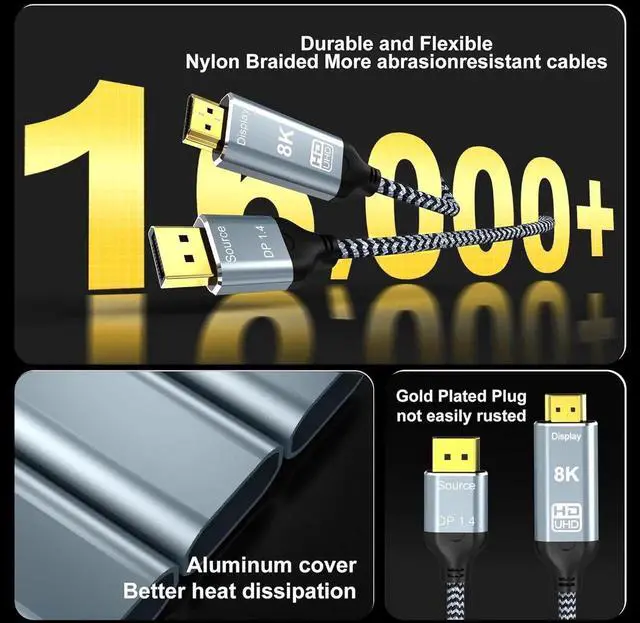 *Note: this 8K displayport to hdmi cable is a ONE-WAY cable specifically designed to convert from DisplayPort sources to HDMI displaysDGHUMEN is committed to offering well-designed high-quality products that provide the best solutions for your work and life. Please feel free to contact us if you have any questions