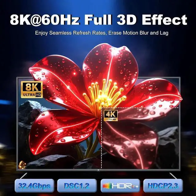 Clarity: 8K DisplayPort to HDMI cable supports 8K@60Hz 5K@60Hz 4K@144Hz/120Hz 2K@240Hz/165Hz and HDCP 2.2 / 1.4. It ensures every frame is displayed clearly and processes every signal source accurately. Supports Dynamic HDR and DSC 1.2 and is compatible with HDCP 2.3 for content protectionEnhance the gaming experienceExperience surround sound and HDR with this HDMI to DisplayPort cable delivering vivid colors and a 4K 240Hz refresh rate. Unleash your GPU and monitor's full potential with high refresh rates and resolutions. This eliminates lag and frame drops during video playback FPS gaming and AAA titles. Support for eARC enables more advanced audio signal control.