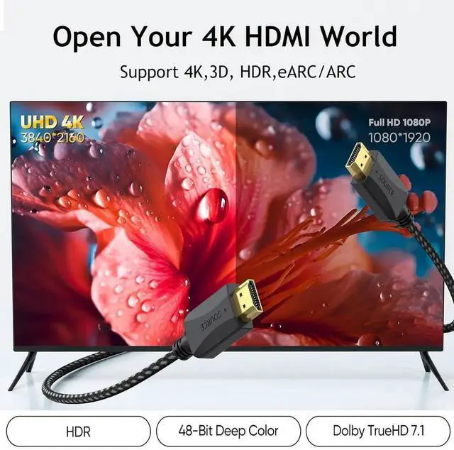 High Speed 4K HDMI Cable The HDMI cable support high resolution: UltraHD 4K 2160p (up to 60