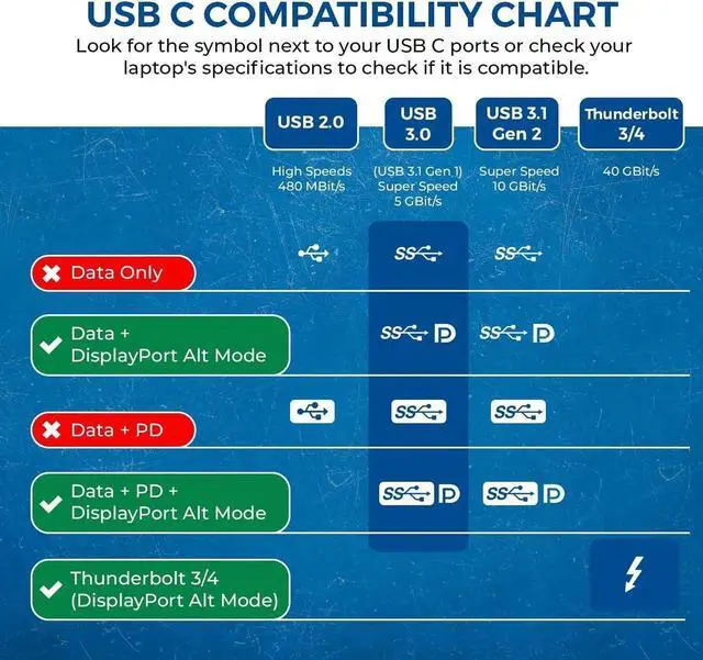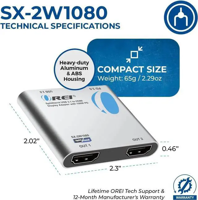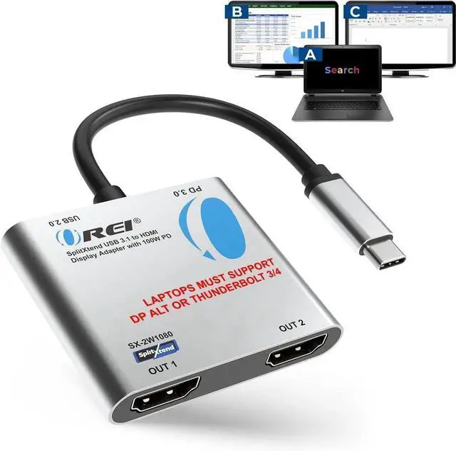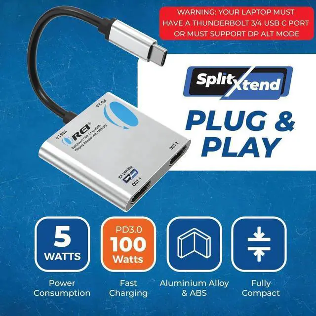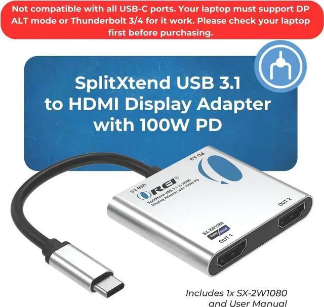 Note: laptops must support DP ALT modeIdeal for web and productivity software. Not recommended for gaming graphics-intensive or design work. Also it doesn't support playback of HDCP-protected content on sites like Netflix and Hulu. and others. USB-A 2.0 port to connect an external USB device like USB Drives. PD 3.0 100W fast charging to charge your laptop while using the splitextend adapter. DP 1.4 ALT mode support. FULL 1 Year Full Warranty with Lifetime OREI Support.