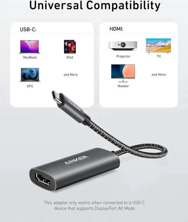 Universal Compatibility: Plug into virtually any USB-C device with support for DisplayPort Alt Mode and connect to a wide range of TVs monitors and projectors.