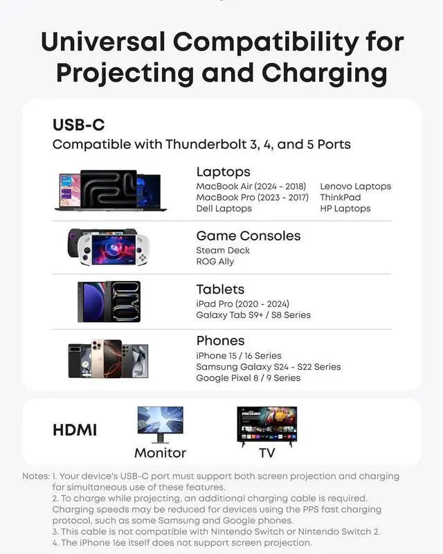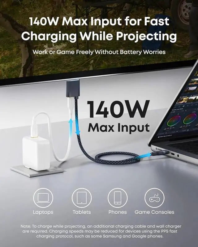 Charging While Streaming: Don't let low battery disrupt your entertainment or work. This cable supports 140W charging while you cast in HD.