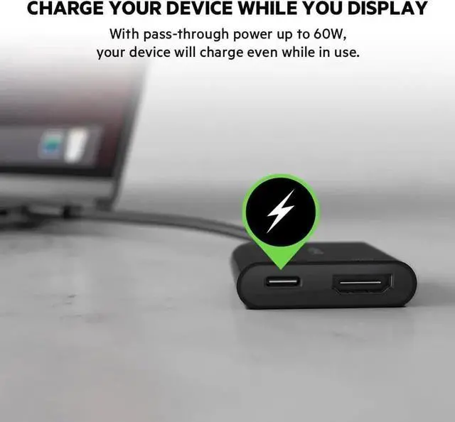 Pass-through Power: You can keep your device charged while using your video display. Featuring pass-through USB Power Delivery up to 60W your device will charge while displaying your content.