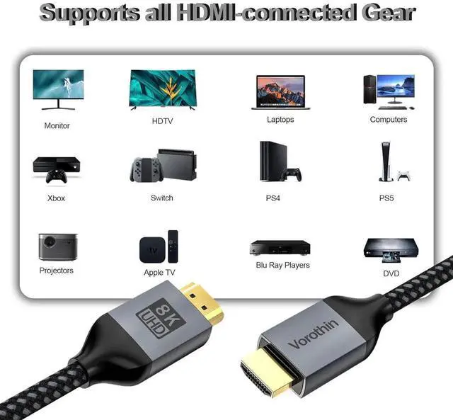 DTS: X this cable brings cinematic surround sound to your home theater setup. CL3 Rated HDMI Cable - NEC Compliant for In-Wall Commercial/Residential AV InstallationsDynamic HDR for Lifelike DepthDynamic HDR 10+ delivers enhanced dynamic range and finer image details elevating your viewing experience. Whether gaming on a 8K /4K HDMI device or streaming your favorite movies enjoy richer depth and true-to-life picture quality. Shielded & Durable HDMI CablesDesigned for rugged use our shielded and durable HDMI cable features an aluminum shell gold-plated connectors and a tough nylon-braided exterior. Perfect for outdoor live streamingwhether connecting a camera to your laptop or effectively used for in-wall wiring enduring harsh environments it resists scratches and ensures stable transmission. Universal Compatibility & Hassle-Free UseOur ultra-high speed HDMI cable works seamlessly with all HDMI devices supporting mirroring and extended displays. Ideal for home theaters offices or pro setupsconnect laptops monitors cameras speakers or projectors with ease. One cable does it all!??