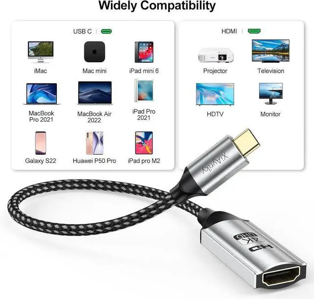 4K USB-C to HDMI AdapterConnect the USB C to HDMI Adapter stream sports events watch movies gaming and show photos/Albums directly from your phone or computer with usb c port to HDMI-enabled TV / monitor /projector for both video and audio transfer. UHD 4K ReslutionSupport high reslution up to 4K@30Hz and is backward compatible with 2K 60Hz (2560x1440p) 1280x720p 1080P You can enjoy vivid clear and smooth image quality with ease. usb c to hdmi male to female adapter support 4K 3D HDCP 2.2 HDR guide You through the engaging realm of streaming audio and video. Widely CompatibleThe Thunderbolt 3 to HDMI adapter is compatible with 2016-2023 MacBook Pro MacBook Air iMac MacBook Google Chromebook Pixel Pixel Book Galaxy S20/S10/S9/S8/S8 Plus Note 9/8 Galaxy Book XPS 15/13 and more.