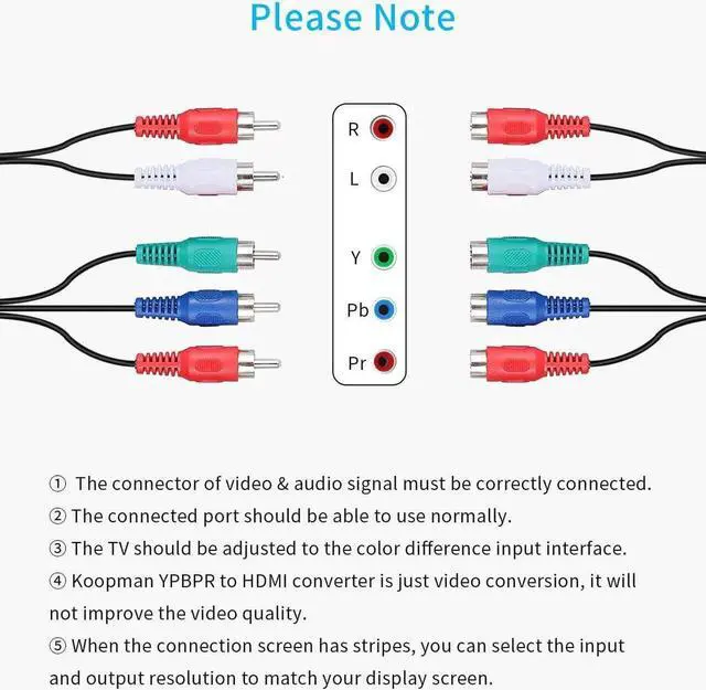 This Component (input) to HDMI(output) converter convert analog YPbPr video and R/L audio signal to HDMI output, enables you to connect your old DVD players and boxes as well as consoles such as Xbox 360 and Wii to your new HDMI Display. Please Note: This product is Component to HDMI Converter, not HDMI to Component Converter, it can not be reversed to use. And make sure your device has YPbPr interface output, not RCA interface.