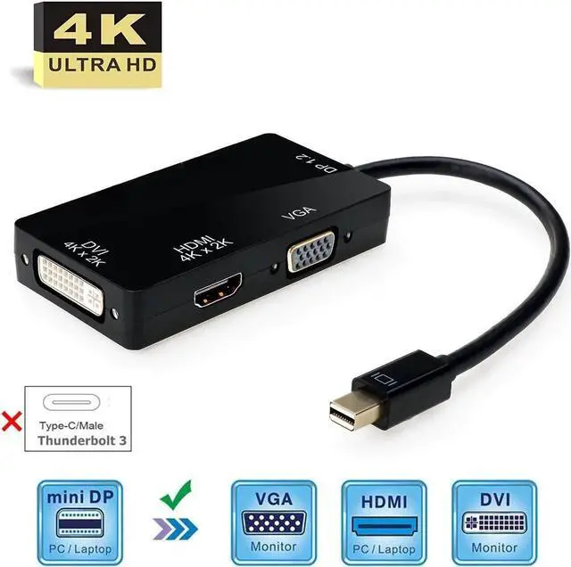 JAENFONG Thunderbolt Mini dp to HDMI DVI VGA 3 in 1 Two 4K Adapter Gold-Plated Connector Video Adapter, for MacBook Pro mac Book air Surface pro - (4K,Black)