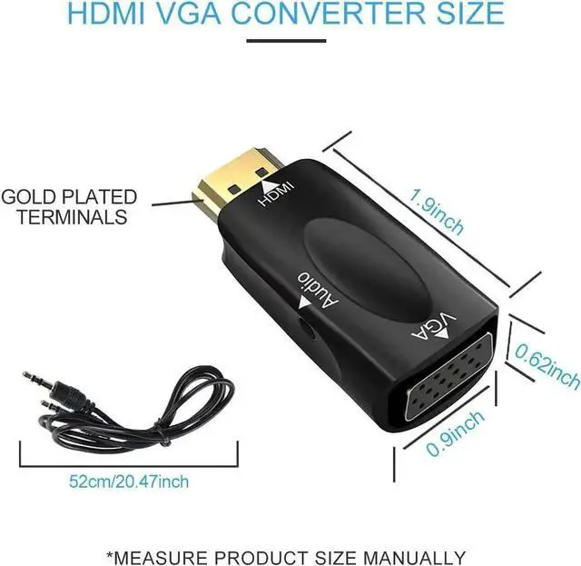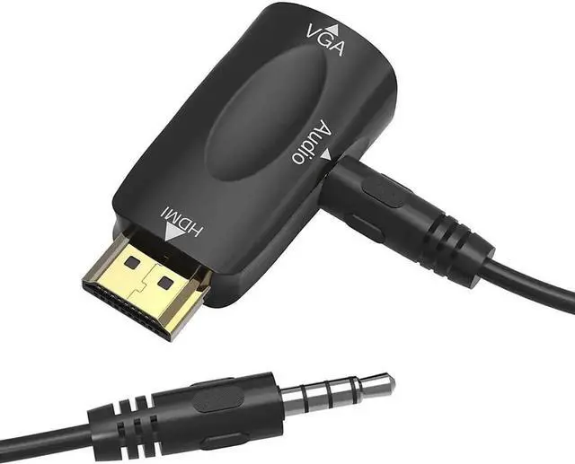 The hdmi to vga adapter will convert the HDMI signal from laptop or PC host to output on a VGA monitor or projector,3.5mm audio port sends audio to speakers or a display.A VGA cable (sold separately) is required when connecting this converter to devices with a VGA connector such as monitors or projectors.