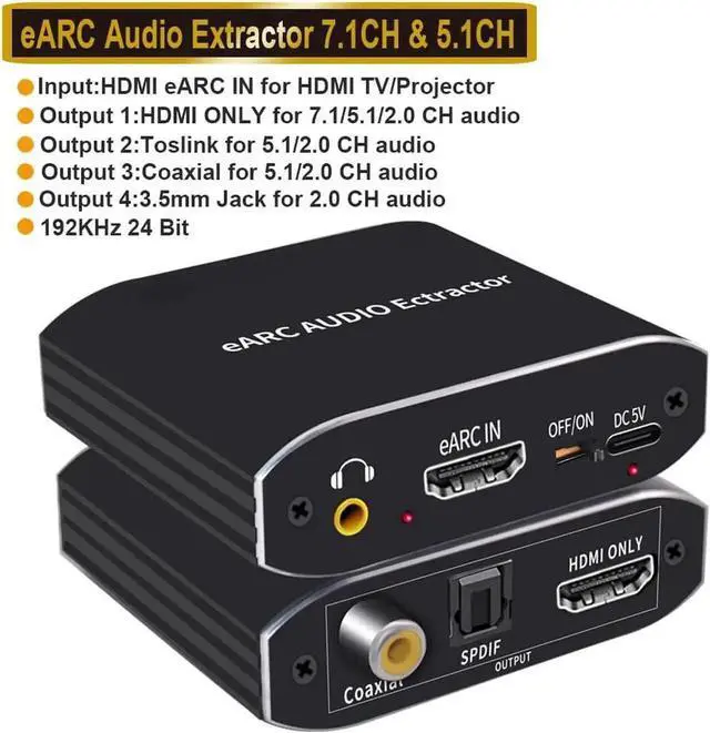 92KHz HDMI-compatible Audio eARC Extractor HDMI-compatible ARC To HDMI AUDIO +Toslink + Coaxial + L/R Converter Audio Return Channel