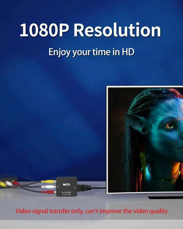 It converts RCA (AV, composite, CVBS) signals to HDMI signals, so your old composite devices can be played on a digital TV with an HDMI port. Up to 10 bits and 162MSPS sampling, black/white level expansion, improved color conversion, dynamic range expansion, blue stretching, auto-detection and auto-conversion of composite signals to 1080p (60Hz) output are used in our RCA to HDMI analog to digital conversion. This makes the video active and provides the clearest and most realistic HD visuals.