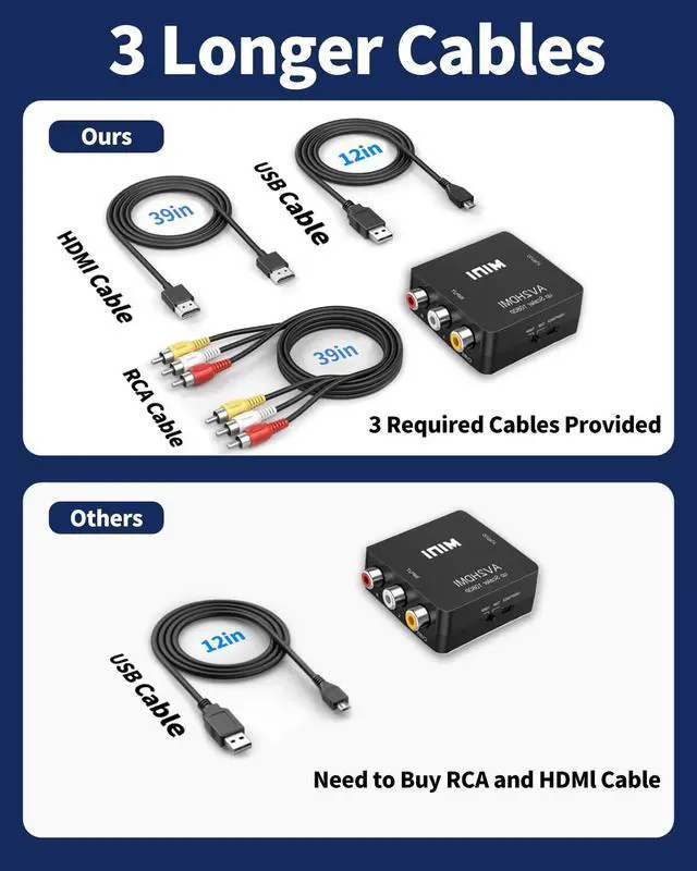 If you want to use your DVD, VCR, VHS, Android TV box or game system with RCA output to connect to your new HDTV or HDMI-only display, this RCA to HDMI converter is what you need.