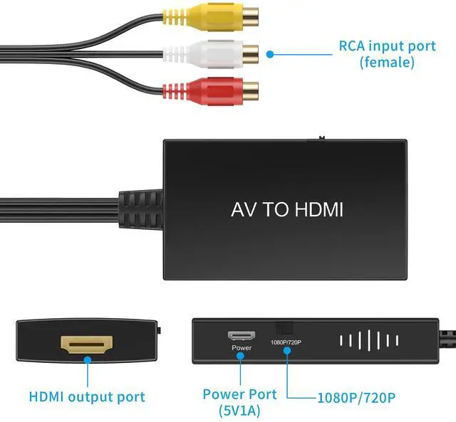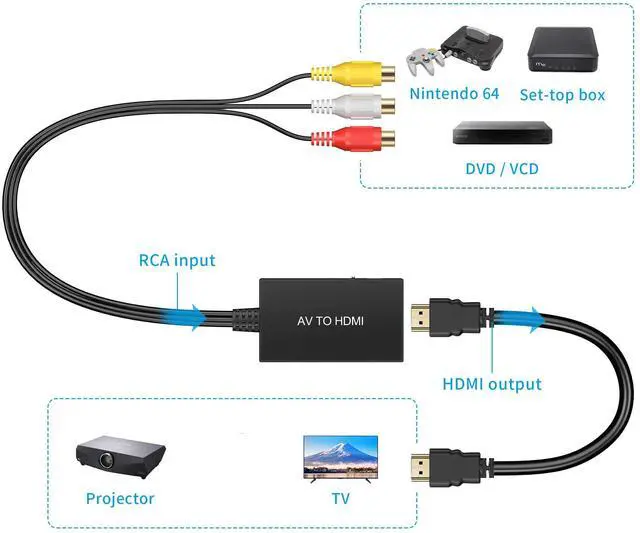 - one. Signal source requires RCA male to HDMI converter
