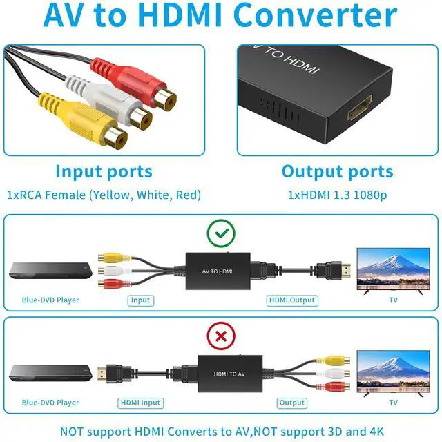 - Note: When you install rca to hdmi converter and start it, due to the incompatibility of the device to some terminals, please tell us promptly if the following problems arise.