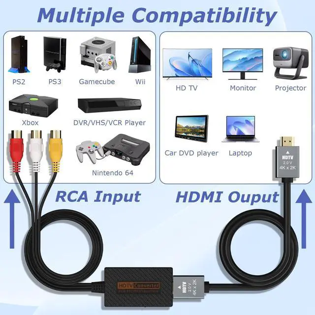 | Compatible Devices | PS1, PS2, PS3, Wii, Xbox, GameCube, N64, STB, VHS, VCR, Blue-Ray DVD Players |