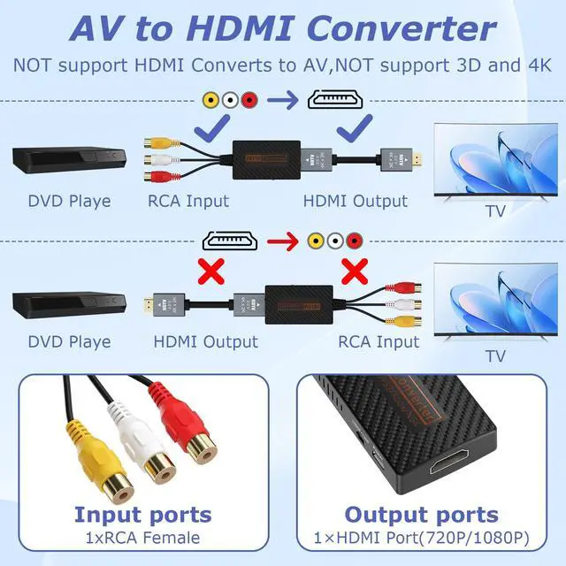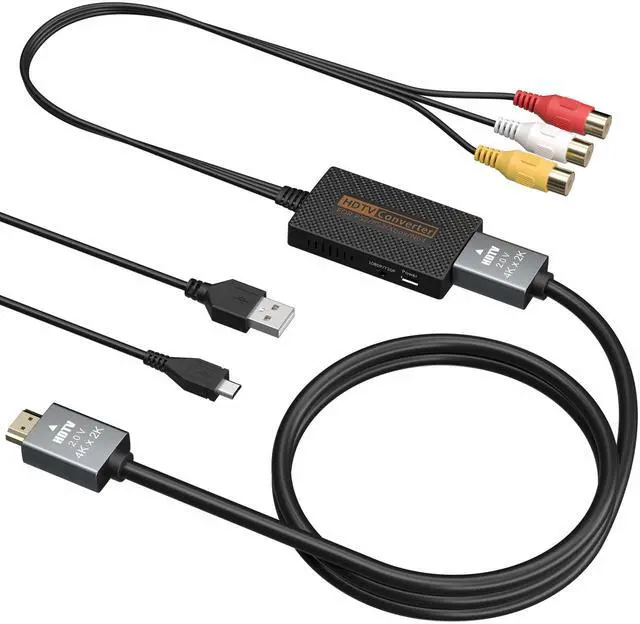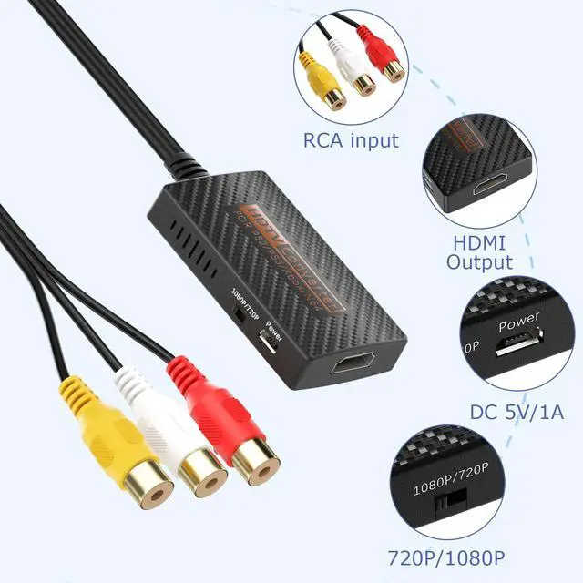 LA NREUCETS RCA to HDMI Converter, Composite AV to HDMI Converter Support 1080P with HDMI Cable for Xbox/Wii/PS1/PS2/PS3/GameCube/N64/VHS/VCR/DVR Players