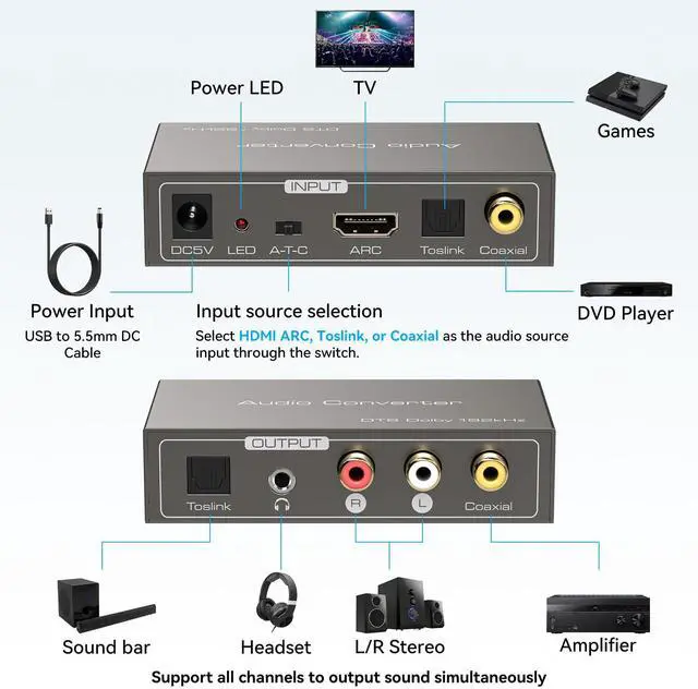 When you want to use headphones to get an immersive gaming experience, but find that the interface does not match. Don't worry, this audio converter supports various audio formats conversion, just flip a small switch "A" "T" "C" on the product, to start a wonderful music enjoyment.