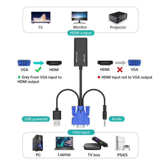 - Can't be used as an HDMI to VGA adapter. If you need this HDMI to VGA converter, look for this ASIN: B0C8NKR1LMC